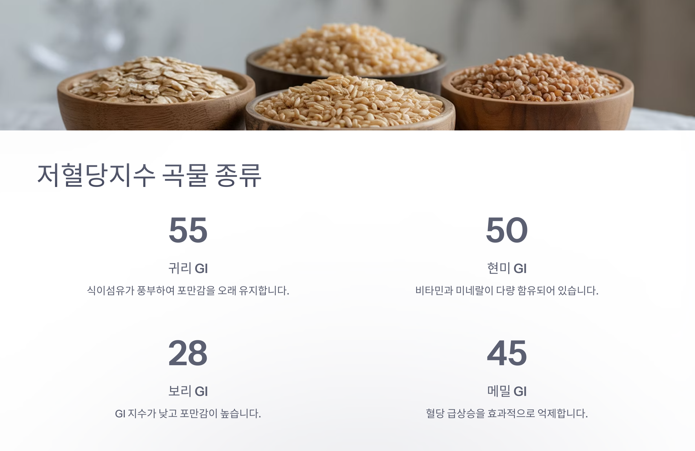 🥣 당뇨에 좋은 저GI 곡물 비교표