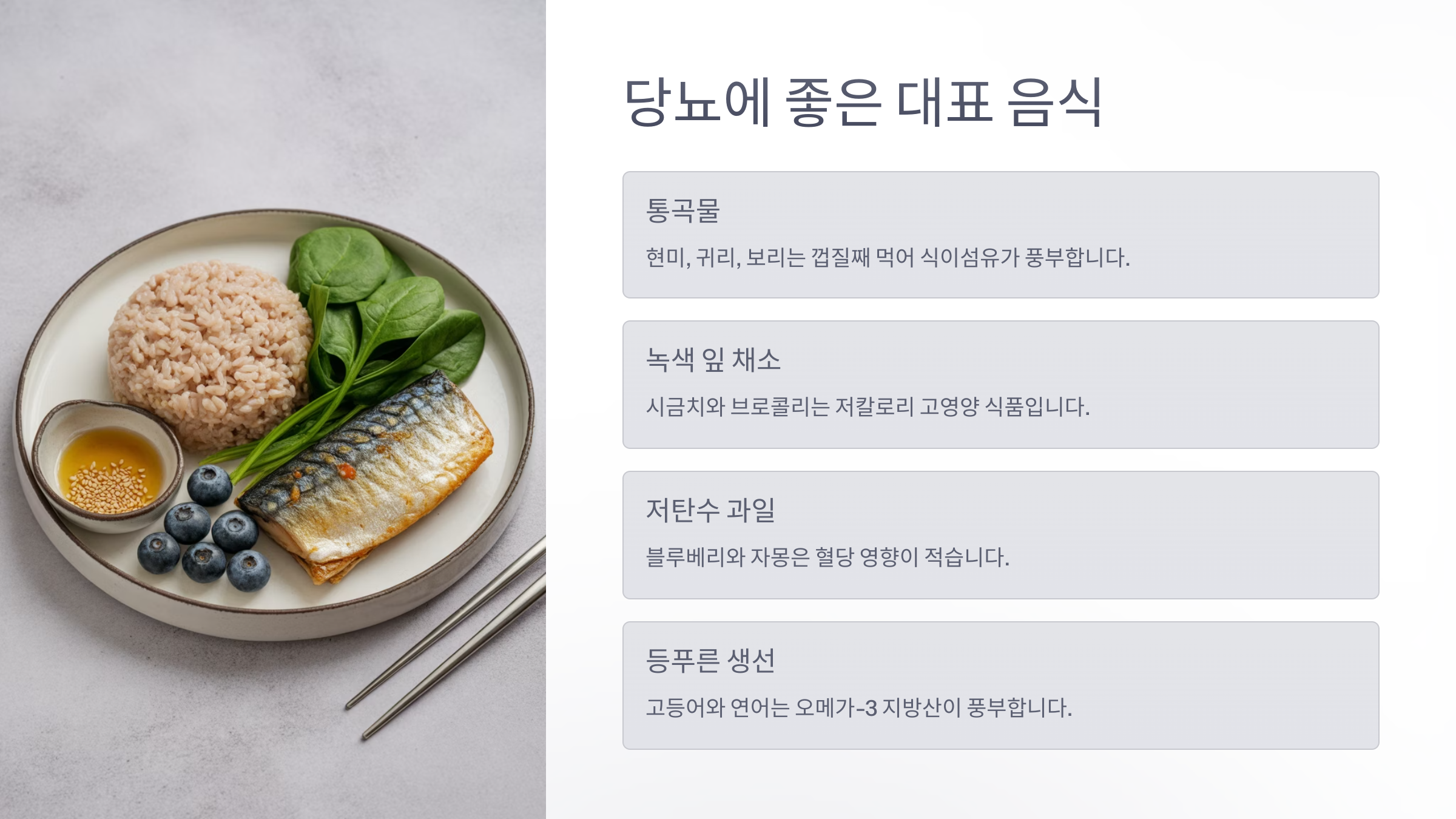 🍽 당뇨에 도움 되는 식품 종류 정리