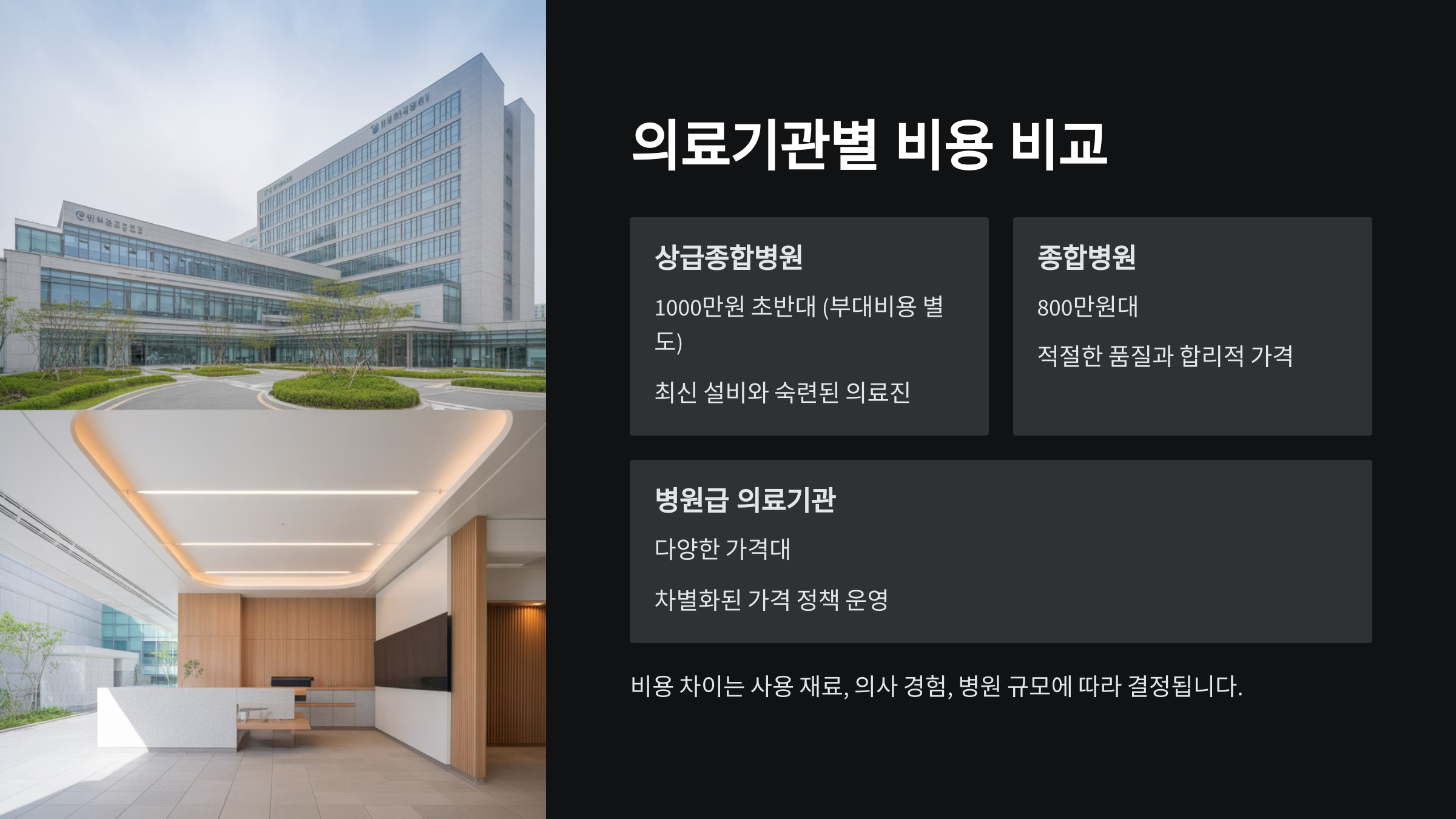 2025년 기준으로, 국민건강보험 적용 전 총비용은 약 800만 원에서 1,200만 원 사이가 평균이에요. 여기에 본인 부담금이 평균 20~30% 수준이라, 실제 환자가 부담하는 금액은 약 300만~500만 원 정도로 생각할 수 있어요.