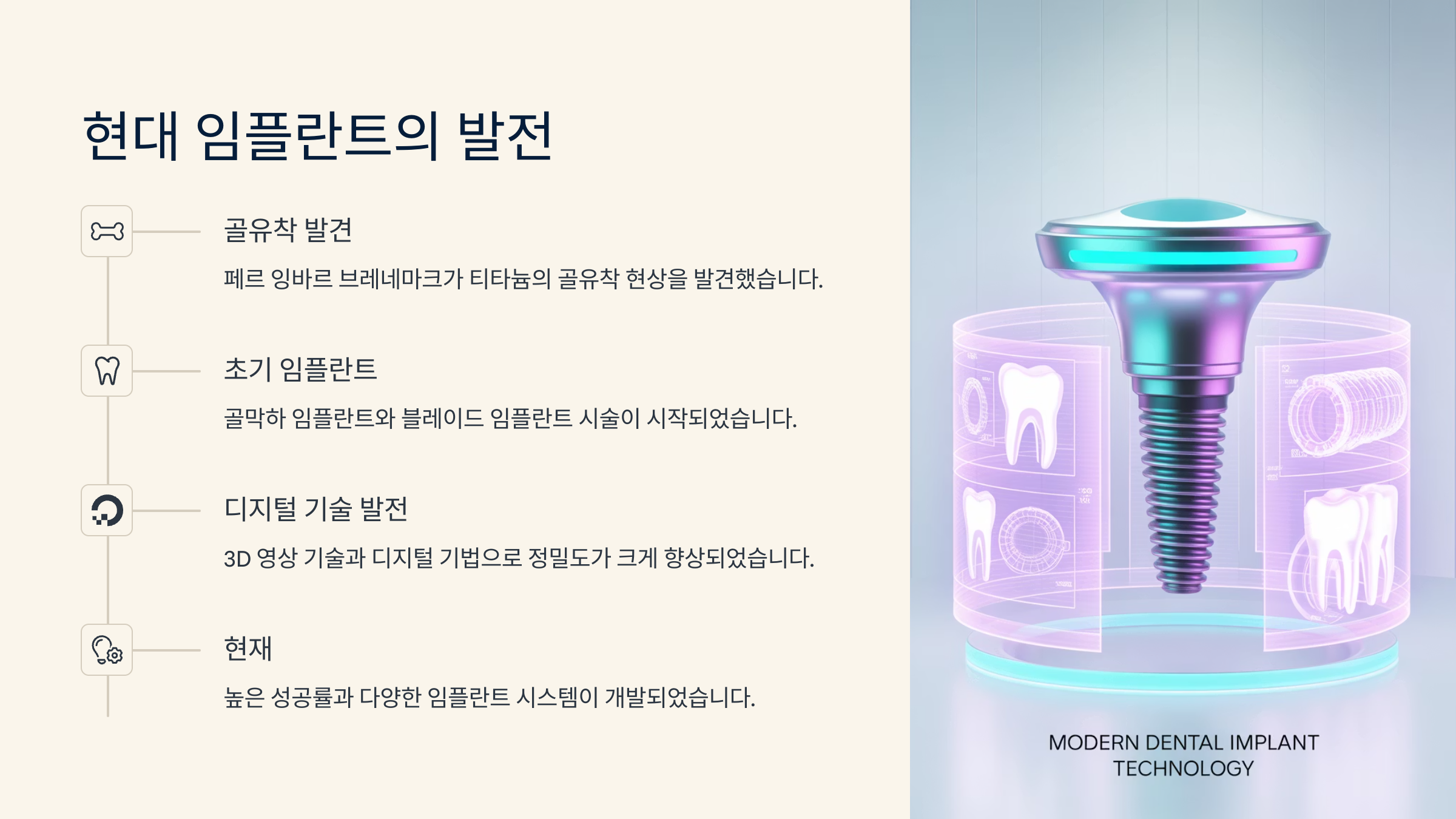 📊 임플란트 역사 비교표